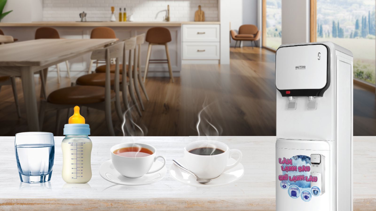 Luôn sẵn sàng đáp ứng mọi nhu cầu về nước cho gia đình bạn từ những thức uống lạnh, giải nhiệt mùa hè đến nhu cầu pha sữa, café, pha trà…