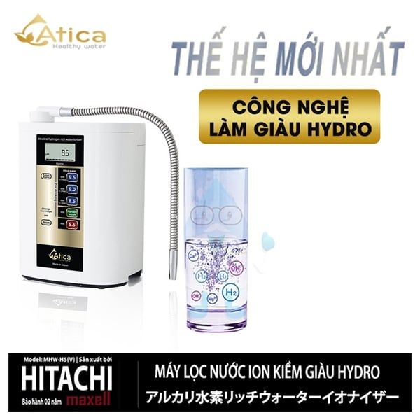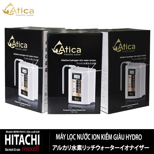 Máy lọc nước ion kiềm Atica MHW-H5(V) giàu hydro, được sản xuất bởi tập đoàn Hitachi Maxell (nay là Maxell, ltd), Nhật Bản. Sản phẩm được nhập khẩu nguyên chiếc từ Nhật Bản, do đó tuổi thọ và chất lượng sản phẩm luôn đáp ứng đúng tiêu chuẩn của Hệ thống Quản lý máy ion kiềm tại Nhật Bản. Hơn nữa, chất lượng nước sau lọc cũng được đảm bảo về chất lượng cho người tiêu dùng.