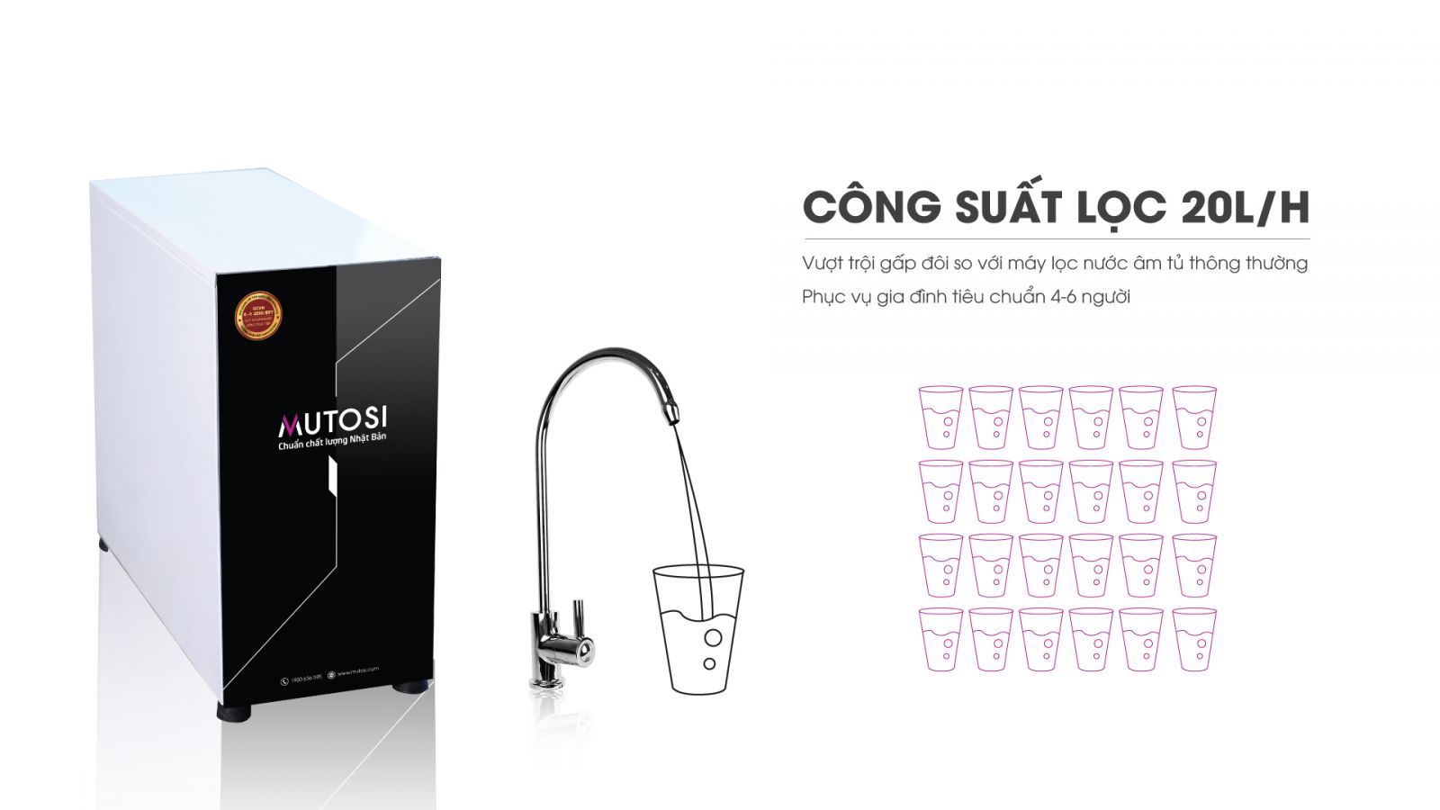 - Công suất lọc lớn 20 L/h đáp ứng cho cả nhu cầu uống và nấu ăn hàng ngày.